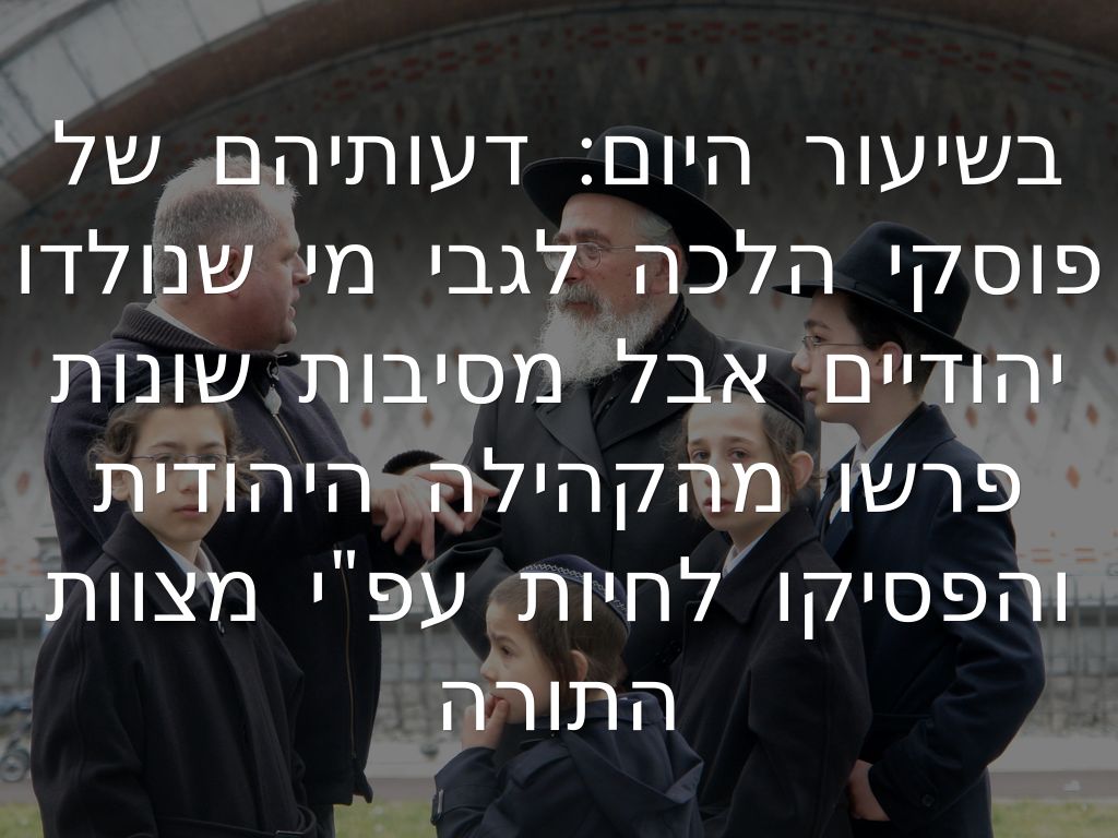 בשיעור היום: דעותיהם של פוסקי הלכה לגבי מי שנולדו יהודיים אבל מסיבות שונות פרשו מהקהילה היהודית והפסיקו לחיות עפ"י מצוות התורה
