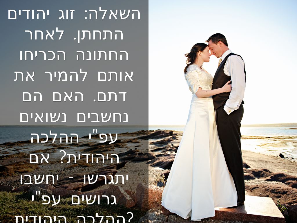 השאלה: זוג יהודים התחתן. לאחר החתונה הכריחו אותם להמיר את דתם. האם הם נחשבים נשואים עפ"י ההלכה היהודית? אם יתגרשו - יחשבו גרושים עפ"י ההלכה היהודית?