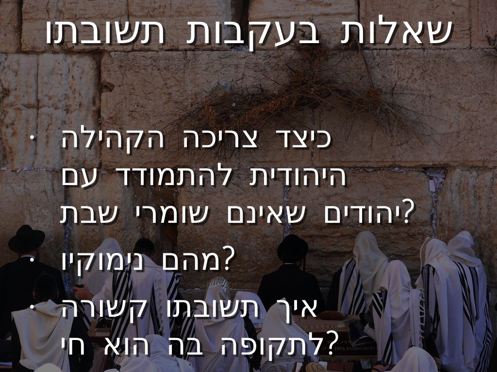 - כיצד צריכה הקהילה היהודית להתמודד עם יהודים שאינם שומרי שבת?