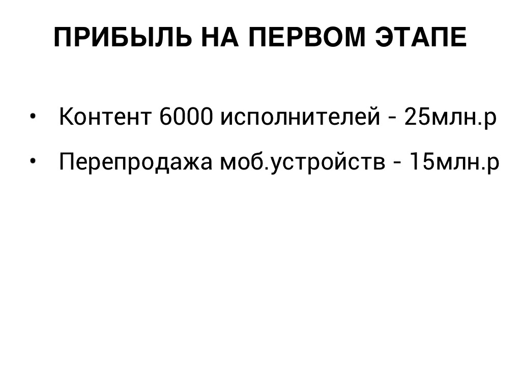 ПРИБЫЛЬ НА ПЕРВОМ ЭТАПЕ