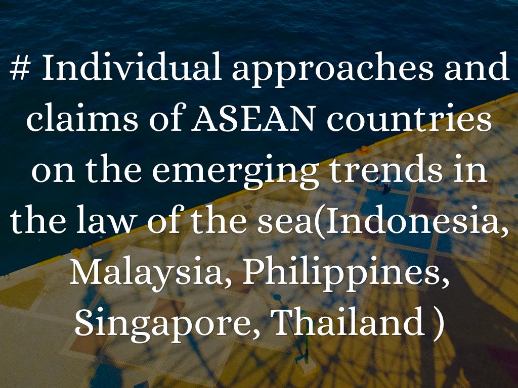 # Individual approaches and claims of ASEAN countries on the emerging trends in the law of the sea(Indonesia, Malaysia, Philippines, Singapore, Thailand )
