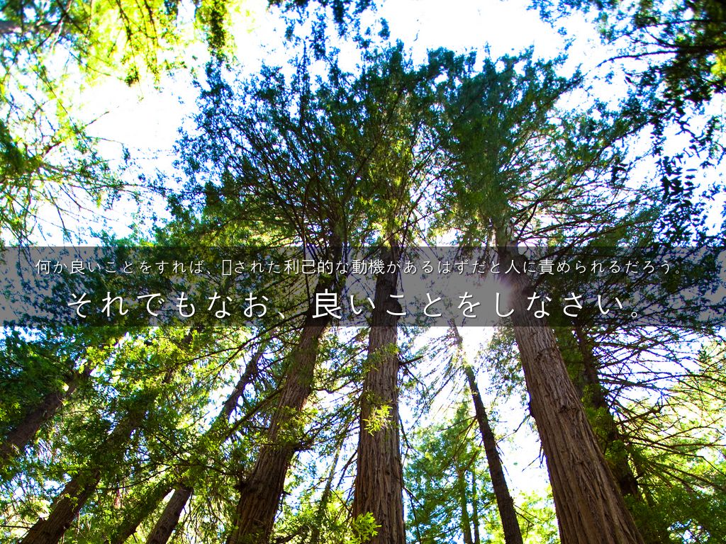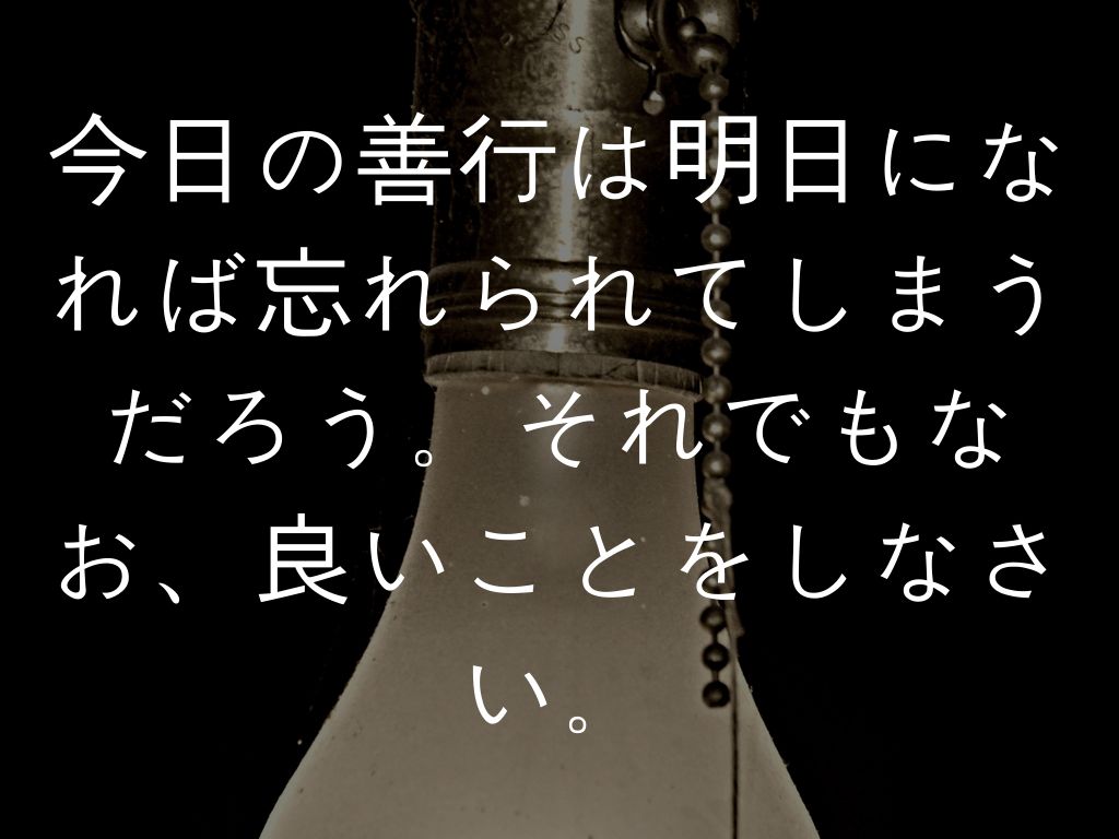 今日の善行は明日になれば忘れられてしまうだろう。それでもなお、良いことをしなさい。