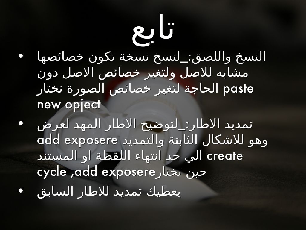 النسخ واللصق:_نسخ اي اطار تكون خصائص النسخة مثل الاصل ولتغير خصائص الاصل دون النسخ نختار paste new opject