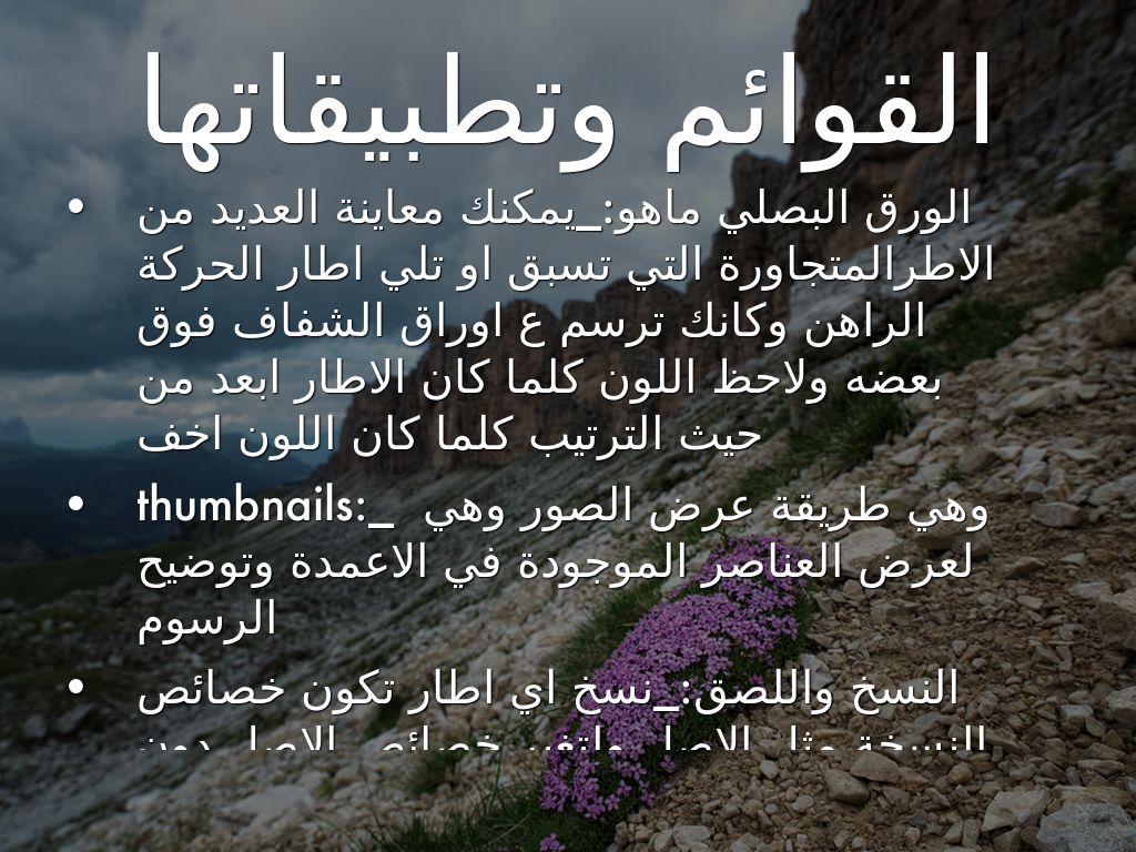 thumbnails:_وهي طريقة عرض الصور وهي لعرض العناصر الموجودة في الاعمدة وتوضيح الرسوم