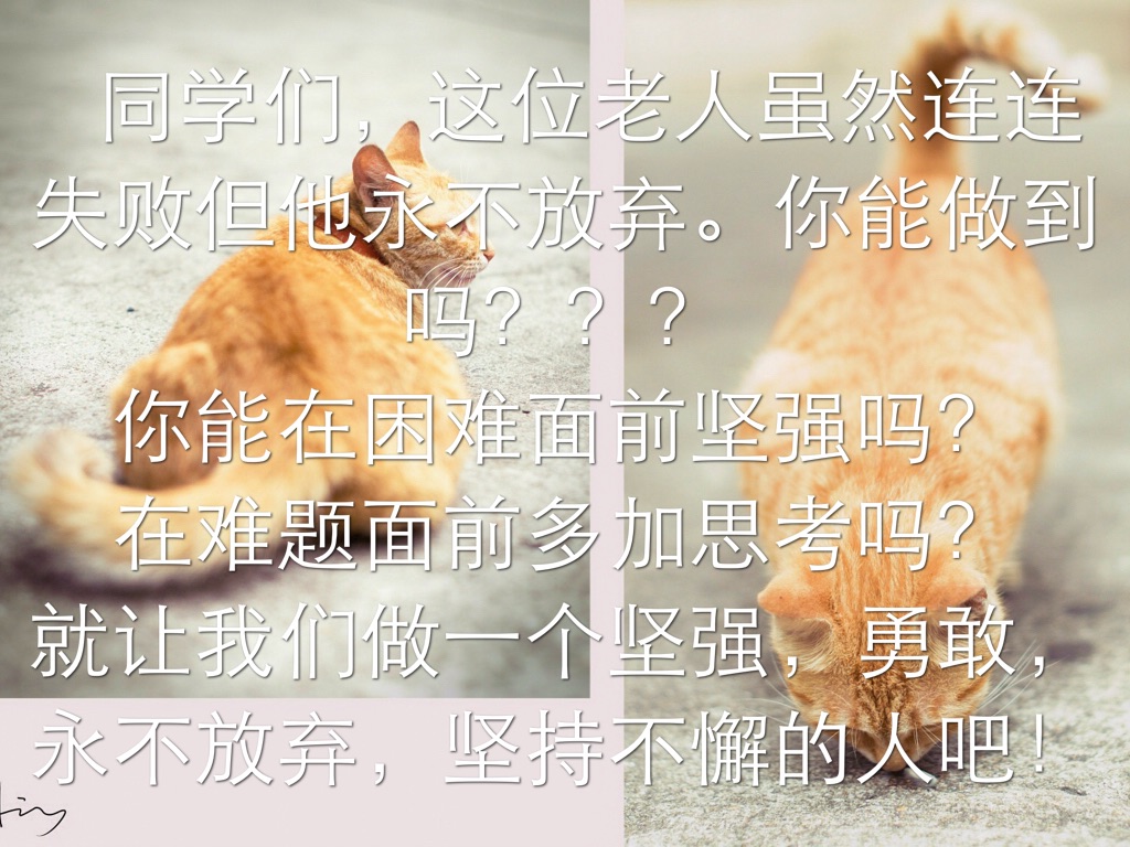 同学们,这位老人虽然连连失败但他永不放弃。你能做到吗???