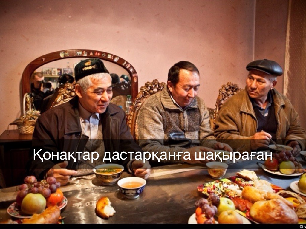 Қонақтар келгенде, үй иесі есікті ашып, үйге шығарады