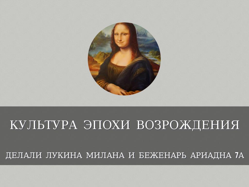 КУЛЬТУРА ЭПОХИ ВОЗРОЖДЕНИЯ