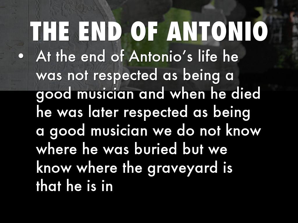 At the end of Antonio’s life he was not respected as being a good musician and when he died he was later respected as being a good musician we do not know where he was buried but we know where the graveyard is that he is in
