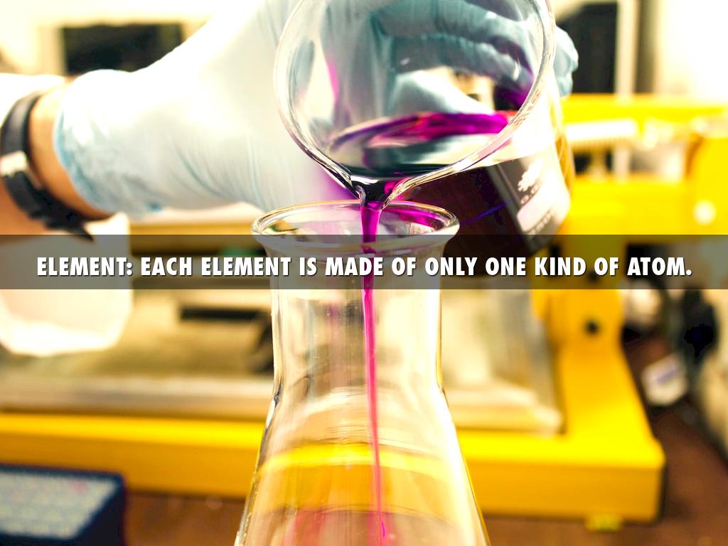 ELEMENT: EACH ELEMENT IS MADE OF ONLY ONE KIND OF ATOM.