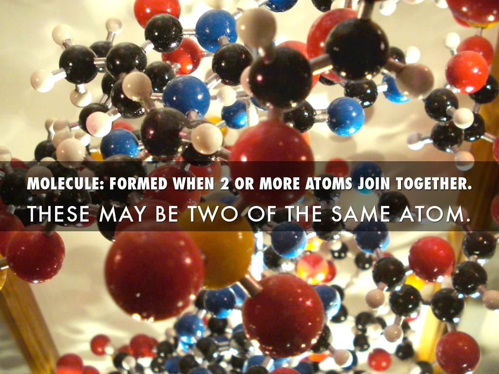 MOLECULE: FORMED WHEN 2 OR MORE ATOMS JOIN TOGETHER.