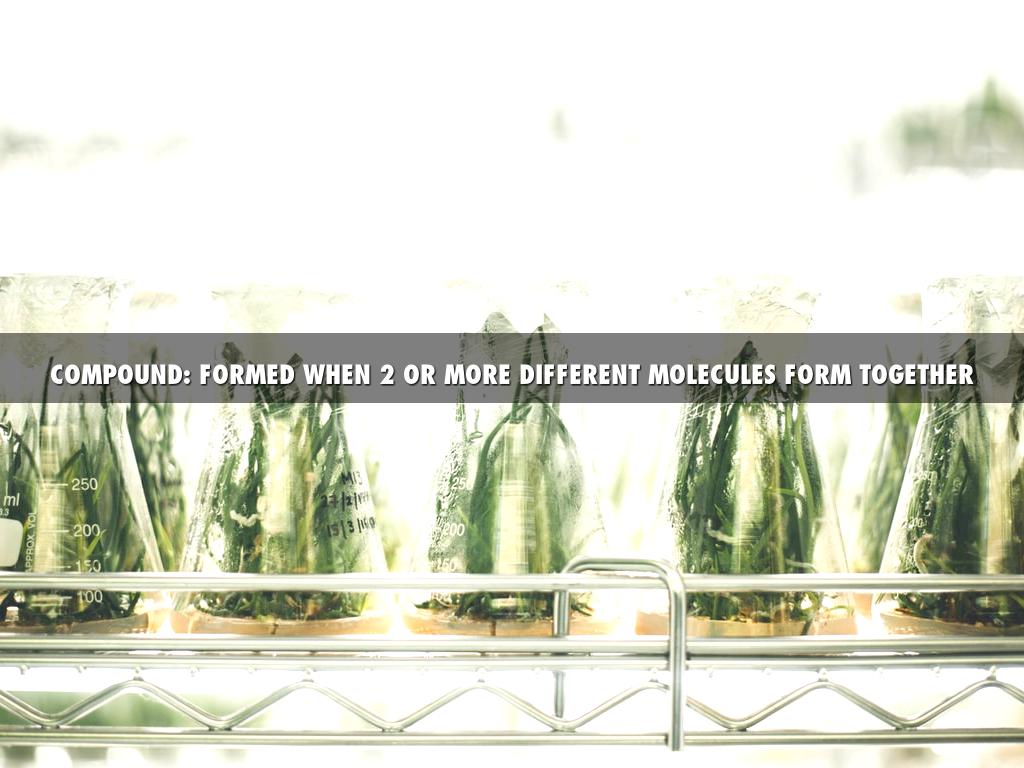 COMPOUND: FORMED WHEN 2 OR MORE DIFFERENT MOLECULES FORM TOGETHER
