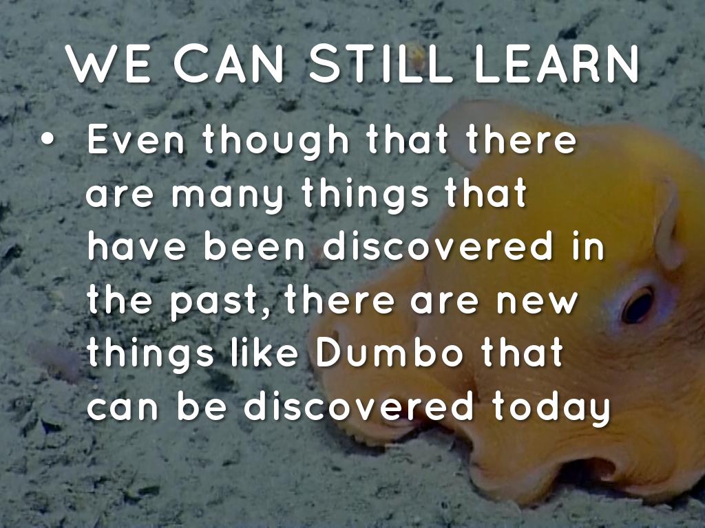 - Even though that there are many things that have been discovered in the past, there are new things like Dumbo that can be discovered today
