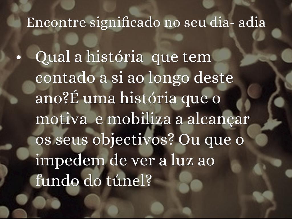 Qual a história que tem contado a si ao longo deste ano?É uma história que o motiva e mobiliza a alcançar os seus objectivos? Ou que o impedem de ver a luz ao fundo do túnel?