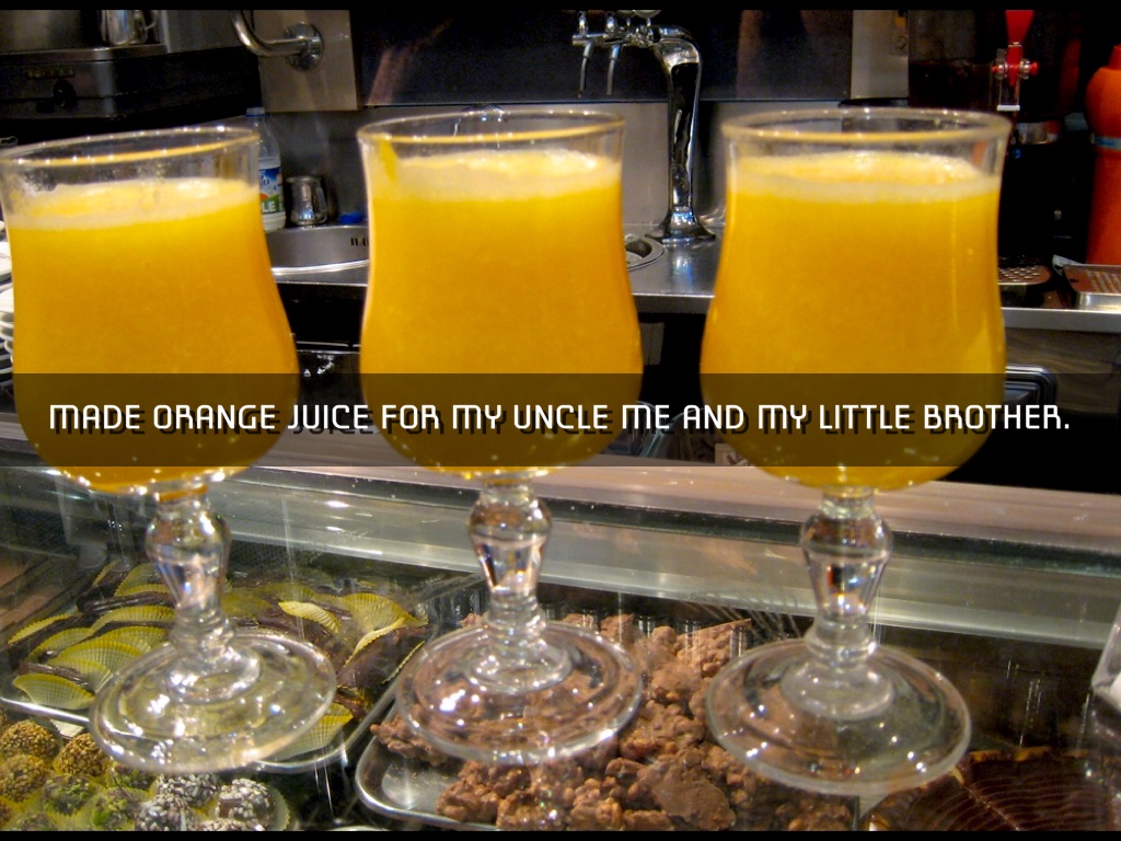 MADE ORANGE JUICE FOR MY UNCLE ME AND MY LITTLE BROTHER.