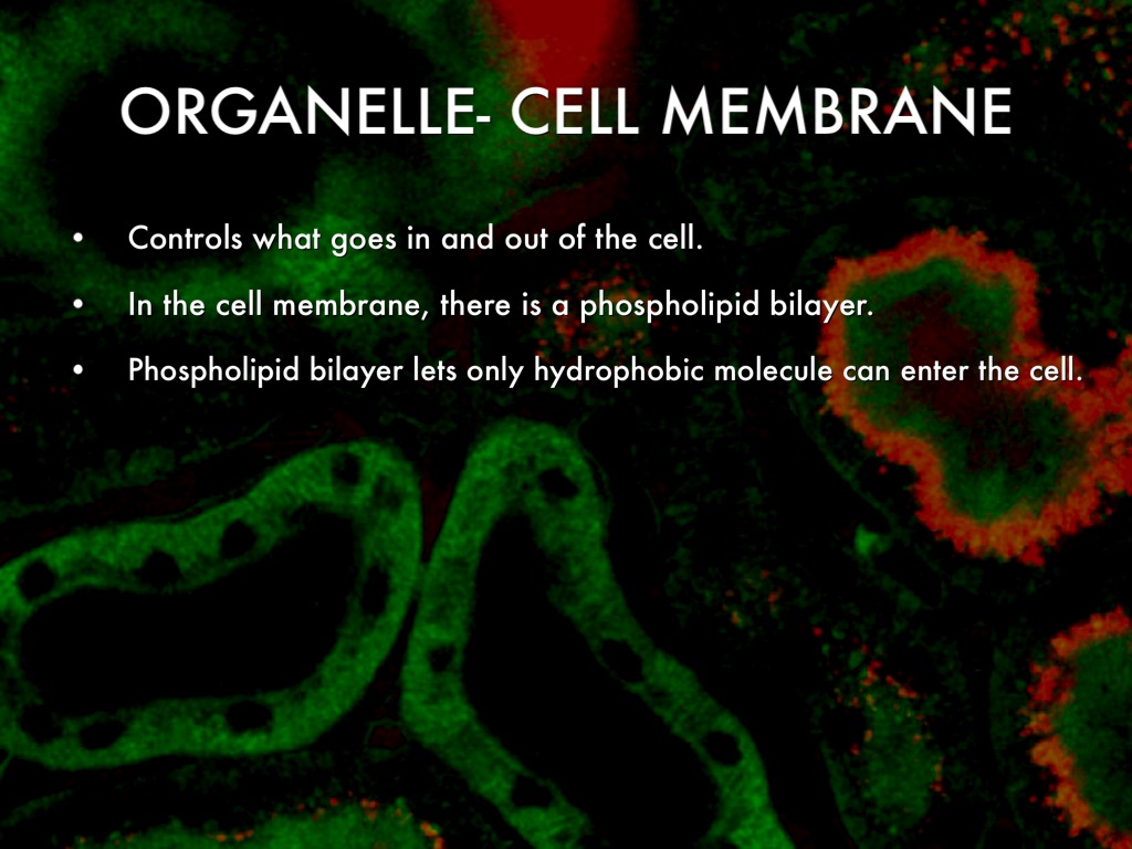 • Phospholipid bilayer lets only hydrophobic molecule can enter the cell.