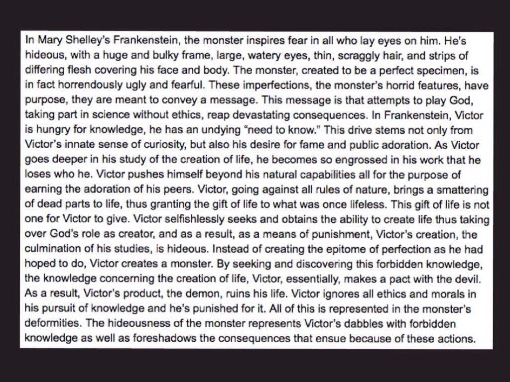Victor gives the gift of life to his monster, thus taking on God's role as creator
