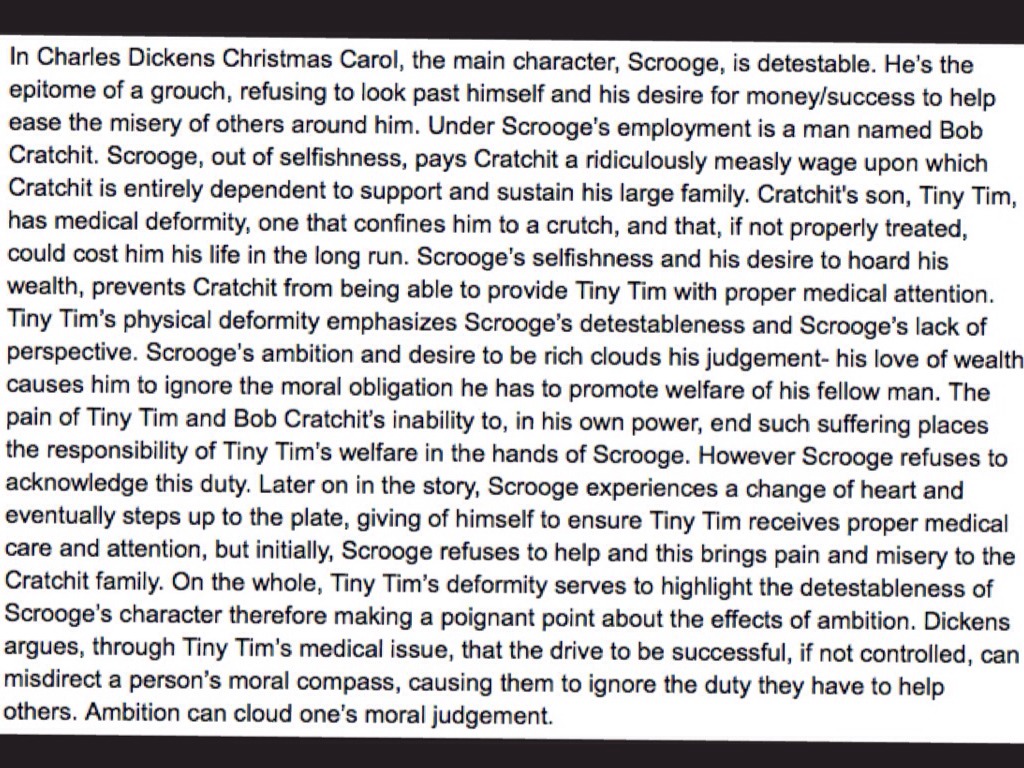 Scrooge's ambition prevents him from carrying out his moral duty to help Tiny Tim