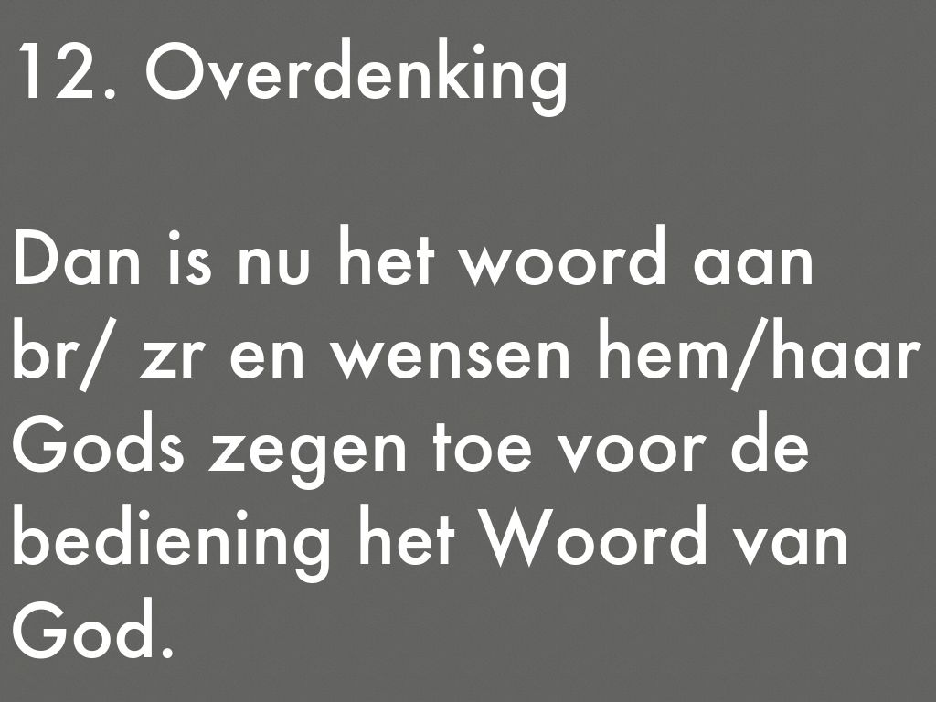 Dan is nu het woord aan br/ zr en wensen hem/haar Gods zegen toe voor de bediening het Woord van God.