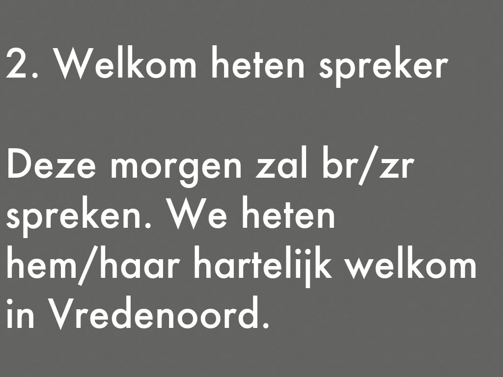 Deze morgen zal br/zr spreken. We heten hem/haar hartelijk welkom in Vredenoord.