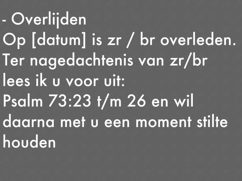 Op [datum] is zr / br overleden. Ter nagedachtenis van zr/br lees ik u voor uit: