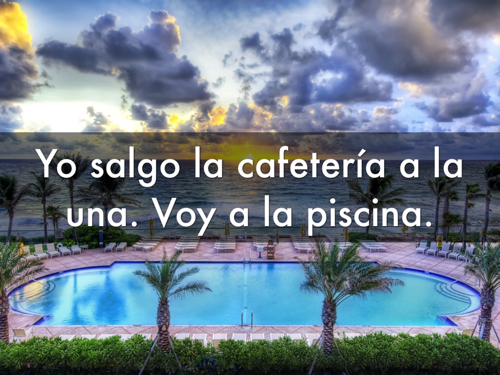 Yo salgo la cafetería a la una. Voy a la piscina.