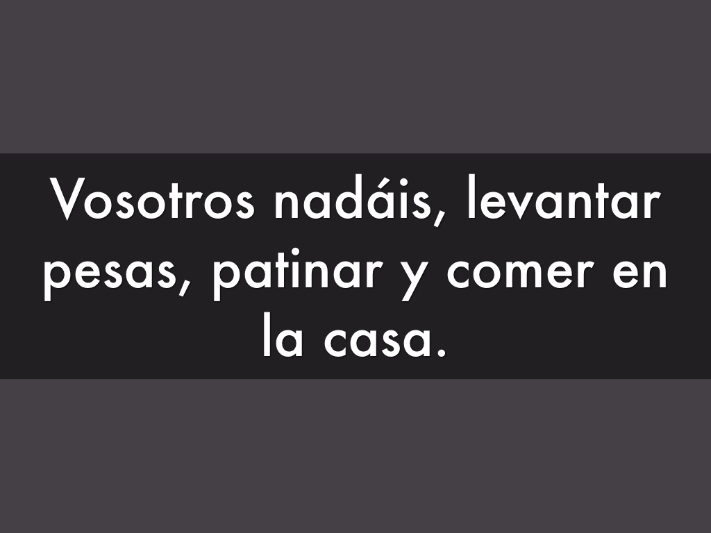 Vosotros nadáis, levantar pesas, patinar y comer en la casa.