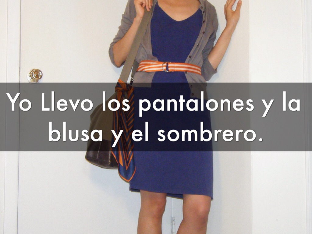 Yo Llevo los pantalones y la blusa y el sombrero.