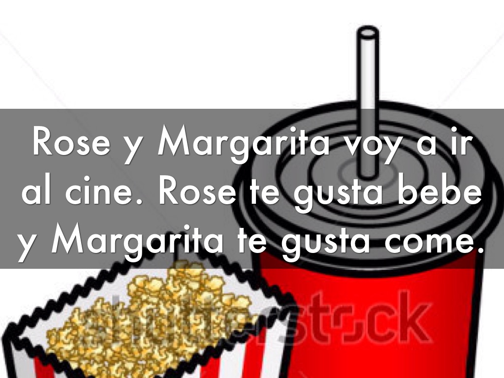 Rose y Margarita voy a ir al cine. Rose te gusta bebe y Margarita te gusta come.