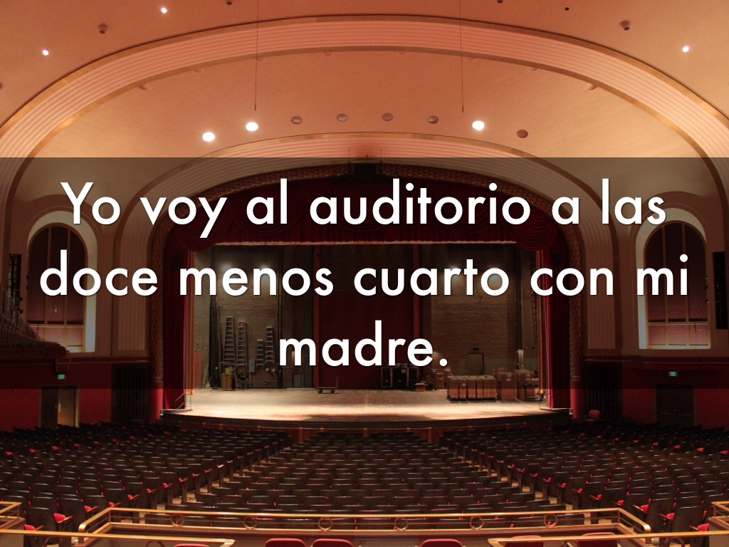 Yo voy al auditorio a las doce menos cuarto con mi madre.