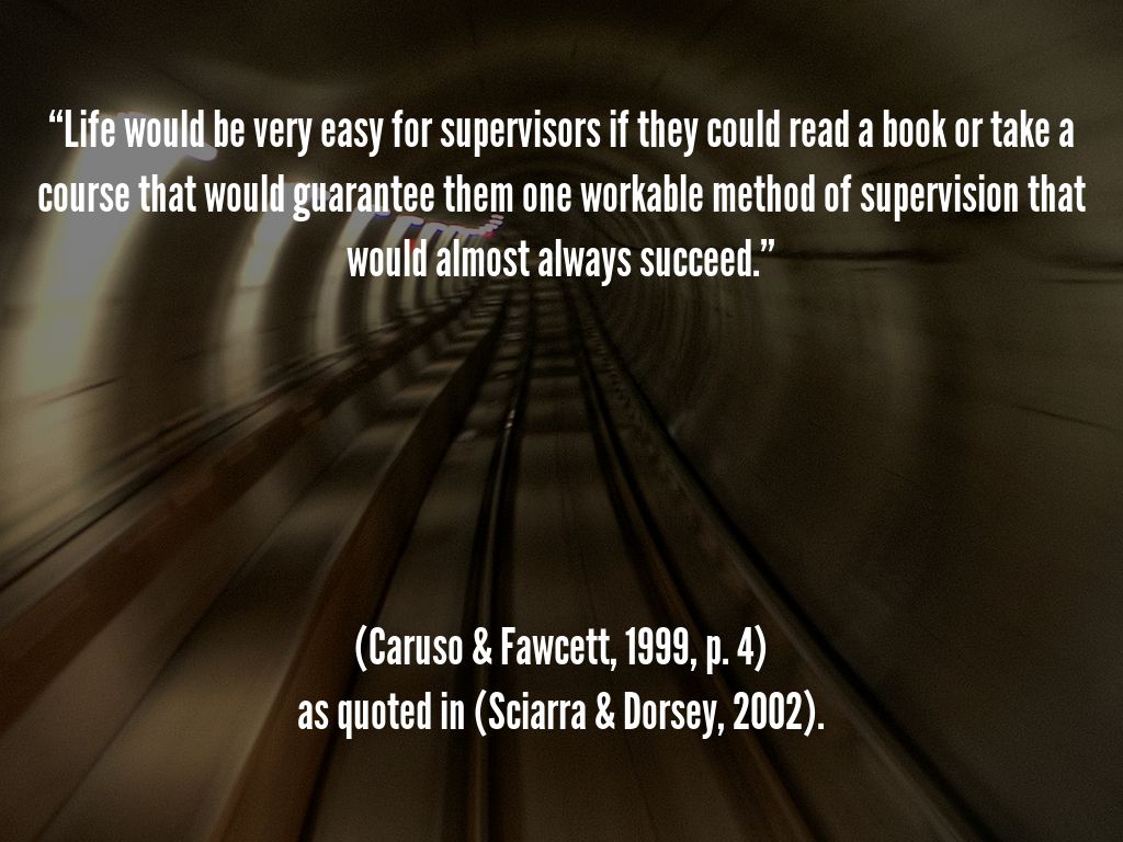 “Life would be very easy for supervisors if they could read a book or take a course that would guarantee them one workable method of supervision that would almost always succeed.”