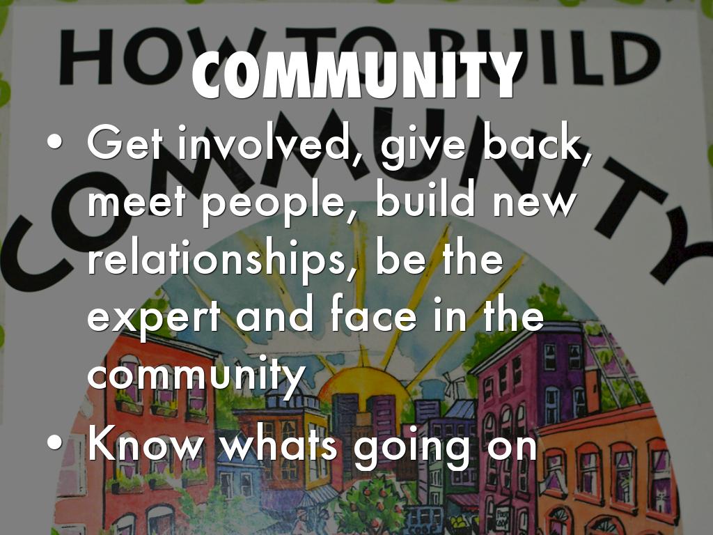 Get involved, give back, meet people, build new relationships, be the expert and face in the community