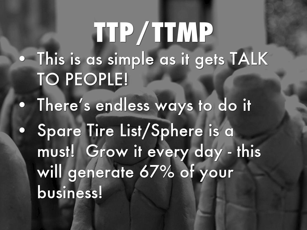 Spare Tire List/Sphere is a must! Grow it every day - this will generate 67% of your business!