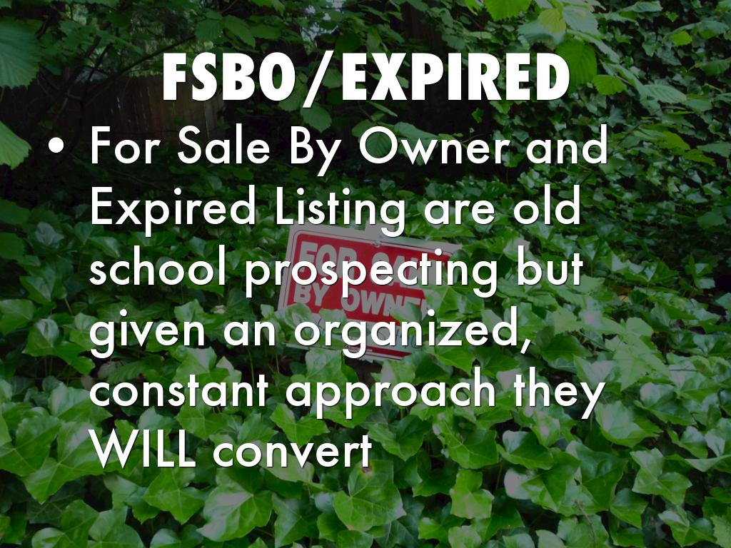For Sale By Owner and Expired Listing are old school prospecting but given an organized, constant approach they WILL convert