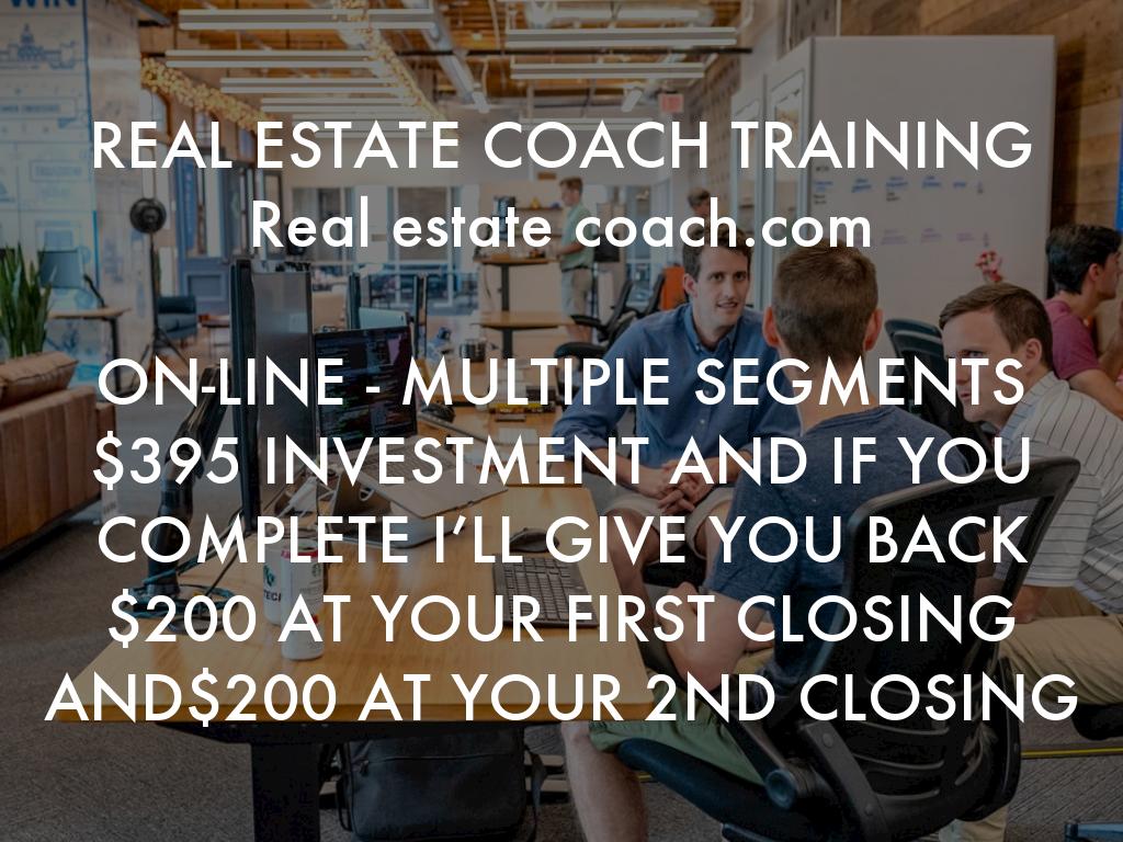 $395 INVESTMENT AND IF YOU COMPLETE I’LL GIVE YOU BACK $200 AT YOUR FIRST CLOSING AND$200 AT YOUR 2ND CLOSING