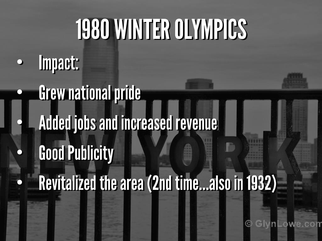 THERE WERE TWO OLYMPICS HELD IN 1980. THE WINTER OLYMPICS WERE IN LAKE PLACID, NEW YORK AND THE SUMMER OLYMPICS WERE IN MOSCOW, RUSSIA.