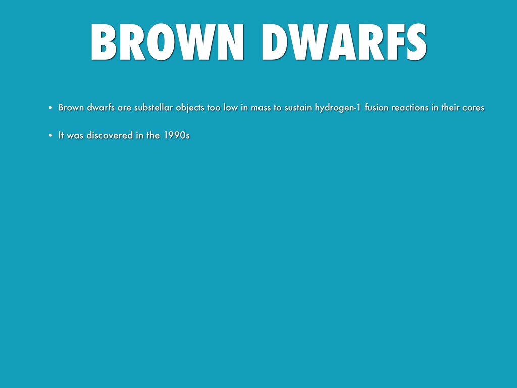 Brown dwarfs are substellar objects too low in mass to sustain hydrogen-1 fusion reactions in their cores