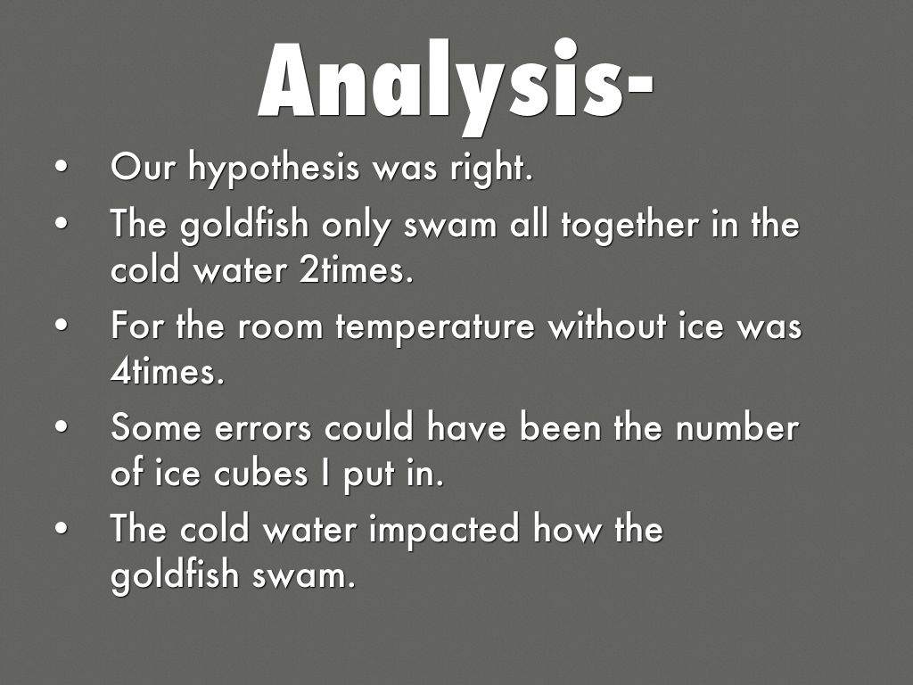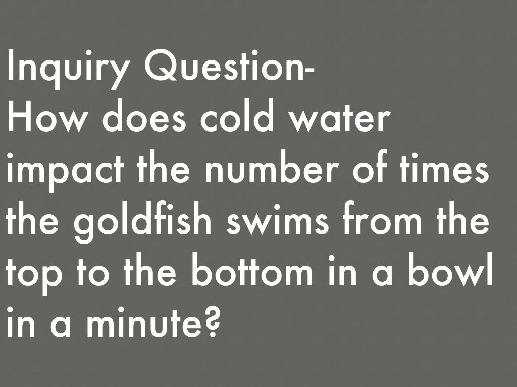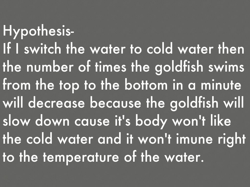 If I switch the water to cold water then the number of times the goldfish swims from the top to the bottom in a minute will decrease because the goldfish will slow down cause it's body won't like the cold water and it won't imune right to the temperature of the water.