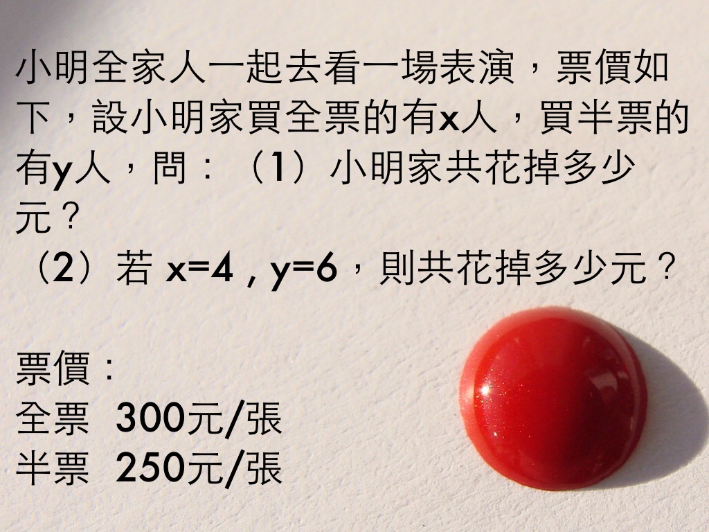 (2)若 x=4 , y=6,則共花掉多少元?