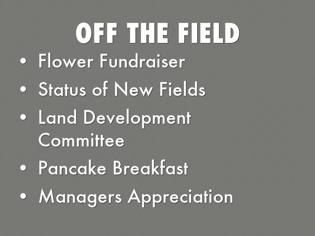 Off the field: Fundraisers, Land Development Committee, Manager's appreciation