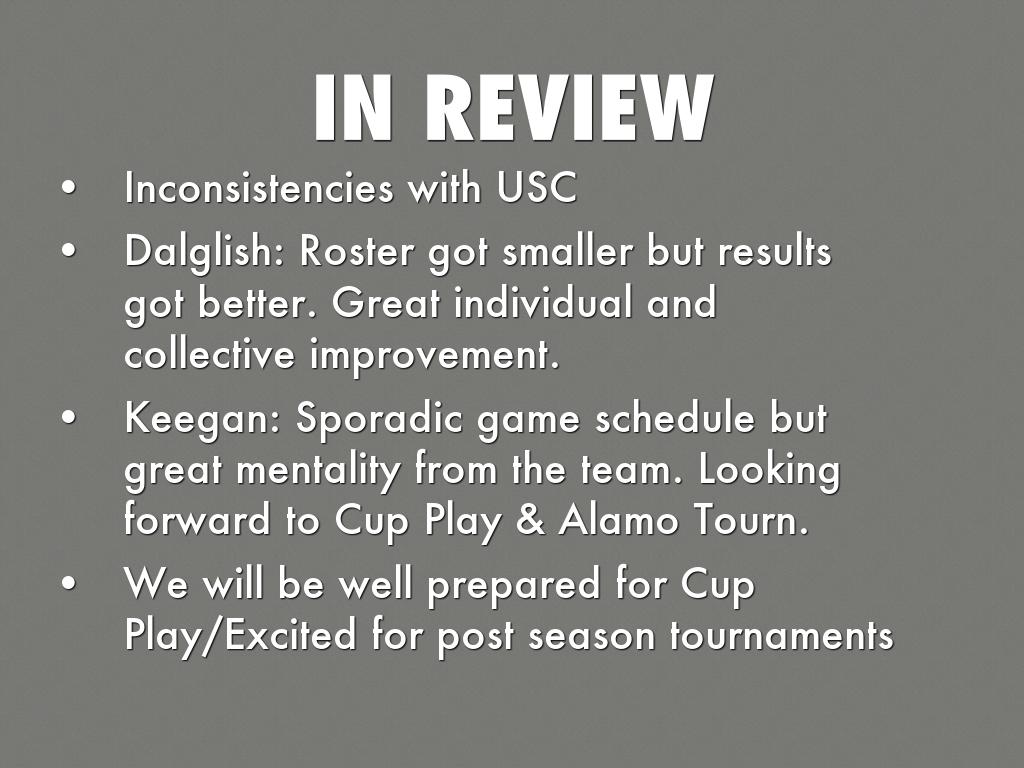 Keegan: Sporadic game schedule but great mentality from the team. Looking forward to Cup Play & Alamo Tourn.