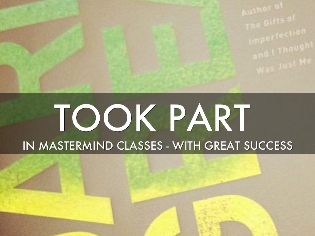 IN MASTERMIND CLASSES - WITH GREAT SUCCESS