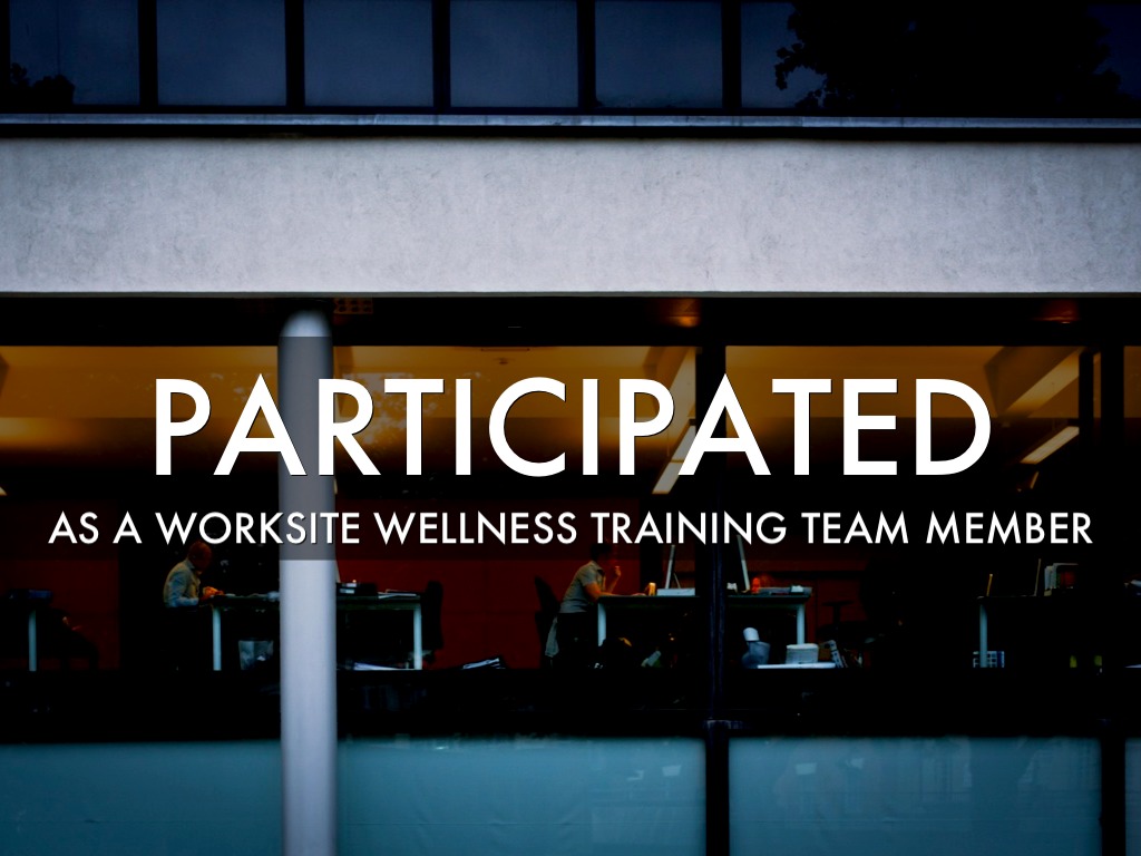 AS A WORKSITE WELLNESS TRAINING TEAM MEMBER