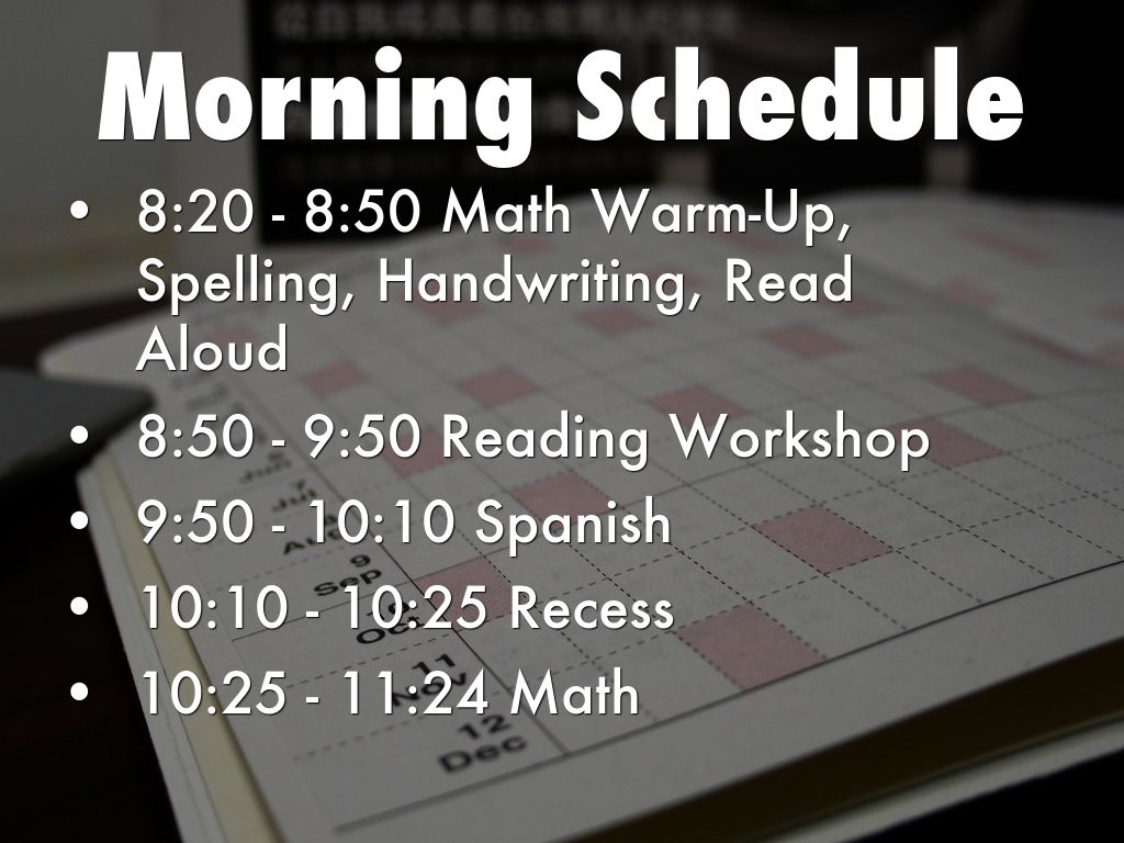 • 8:20 - 8:50 Math Warm-Up, Spelling, Handwriting, Read Aloud