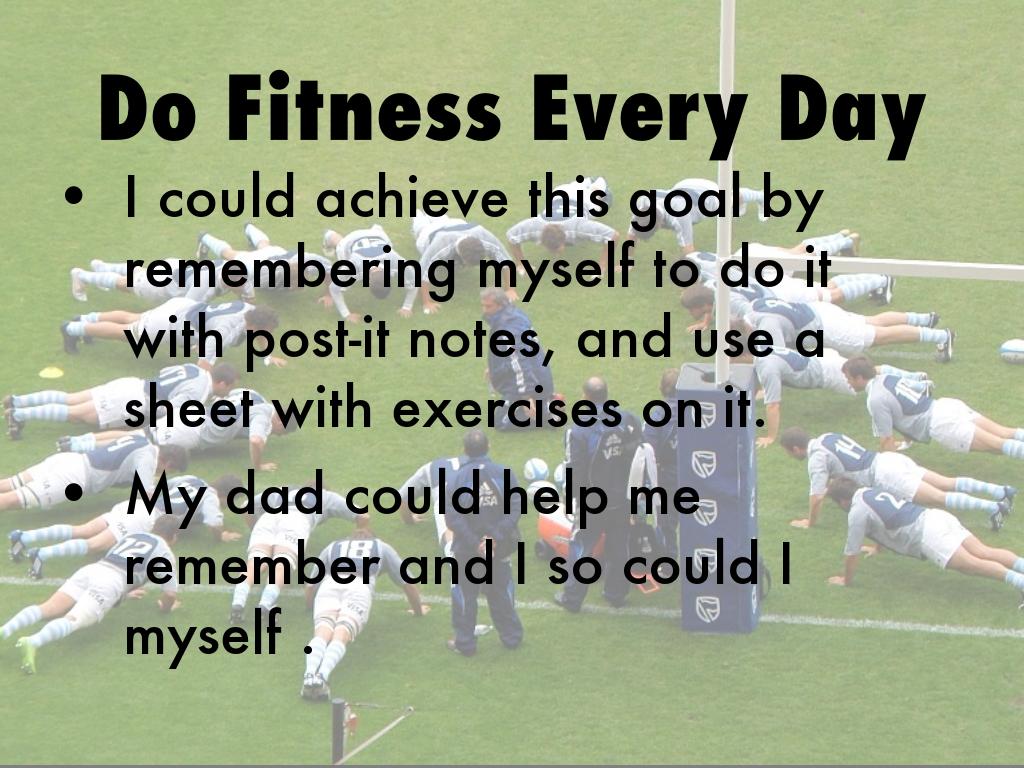 • I could achieve this goal by remembering myself to do it with post-it notes, and use a sheet with exercises on it.