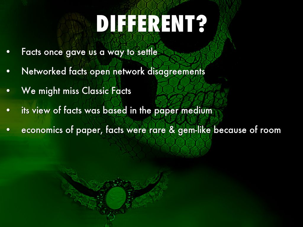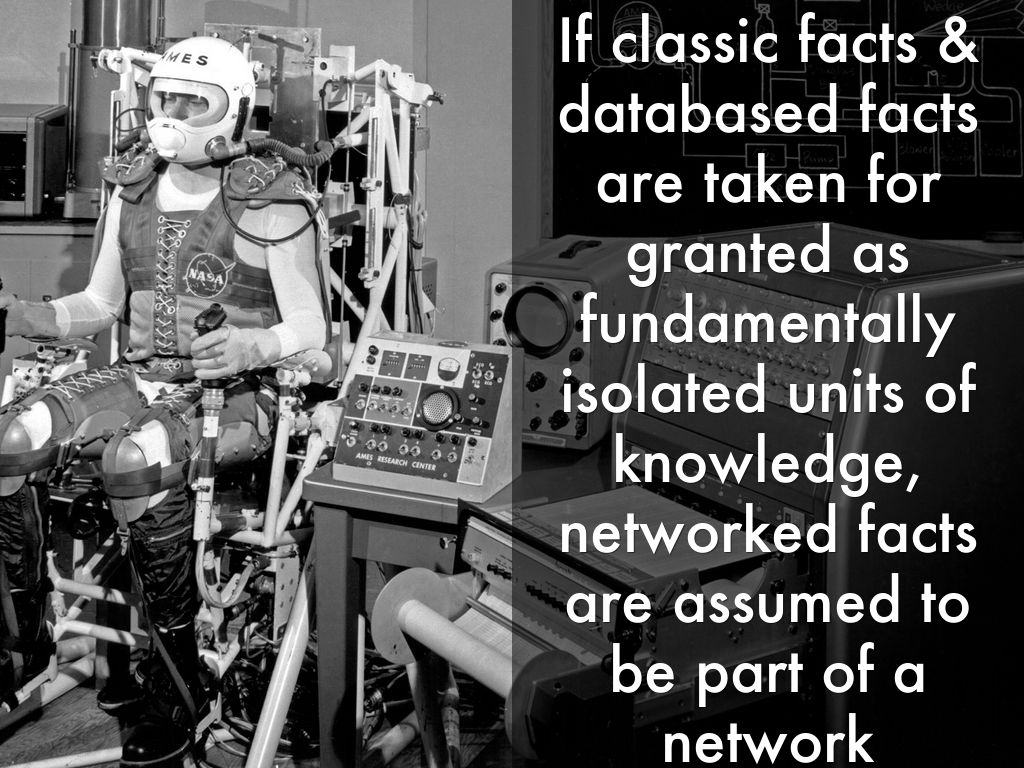 If classic facts & databased facts are taken for granted as fundamentally isolated units of knowledge, networked facts are assumed to be part of a network
