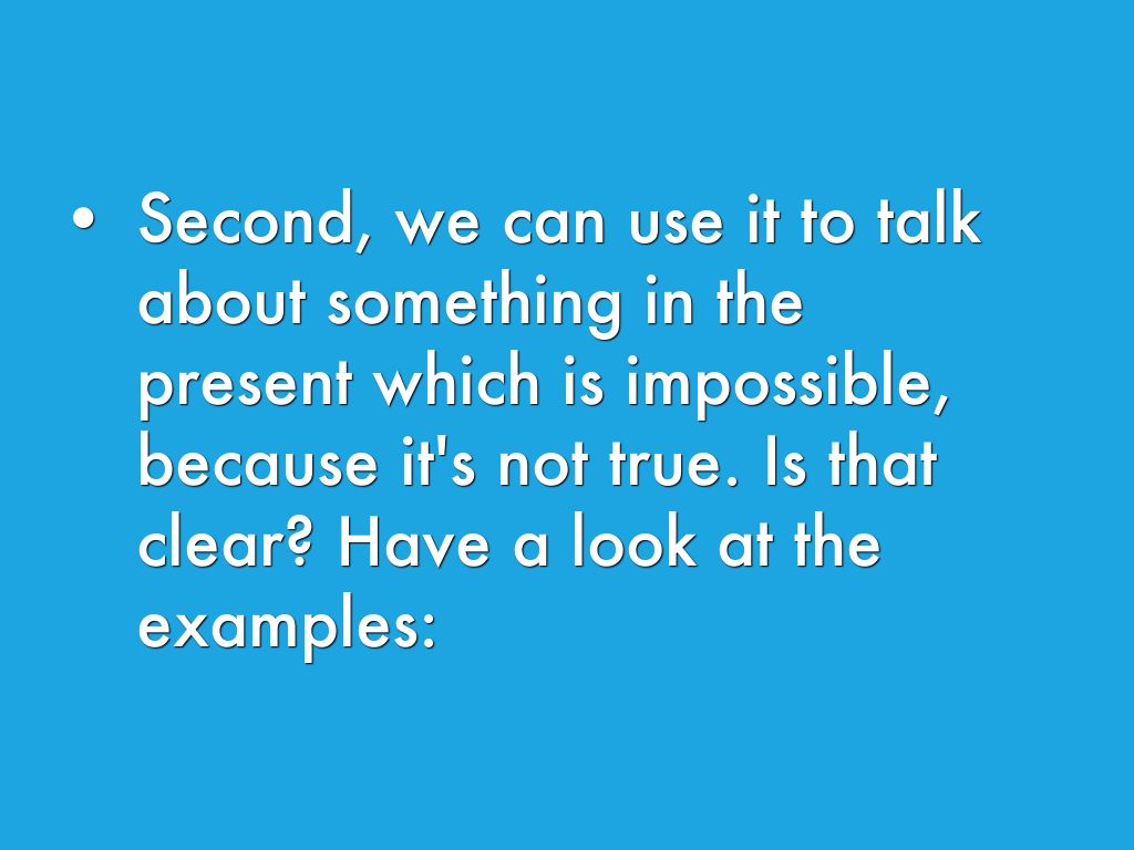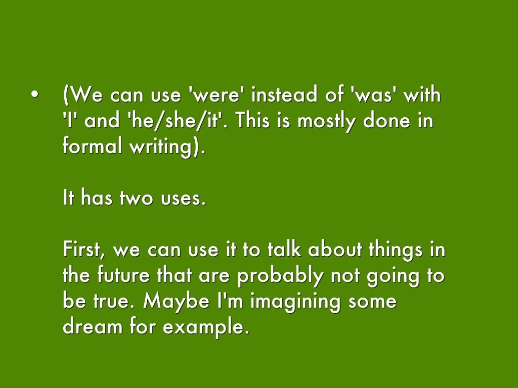 First, we can use it to talk about things in the future that are probably not going to be true. Maybe I'm imagining some dream for example.