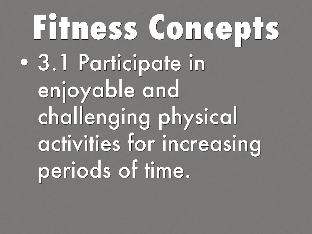 3.1 Participate in enjoyable and challenging physical activities for increasing periods of time.