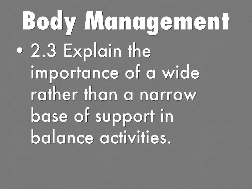 2.3 Explain the importance of a wide rather than a narrow base of support in balance activities.