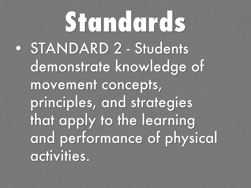 STANDARD 2 - Students demonstrate knowledge of movement concepts, principles, and strategies that apply to the learning and performance of physical activities.