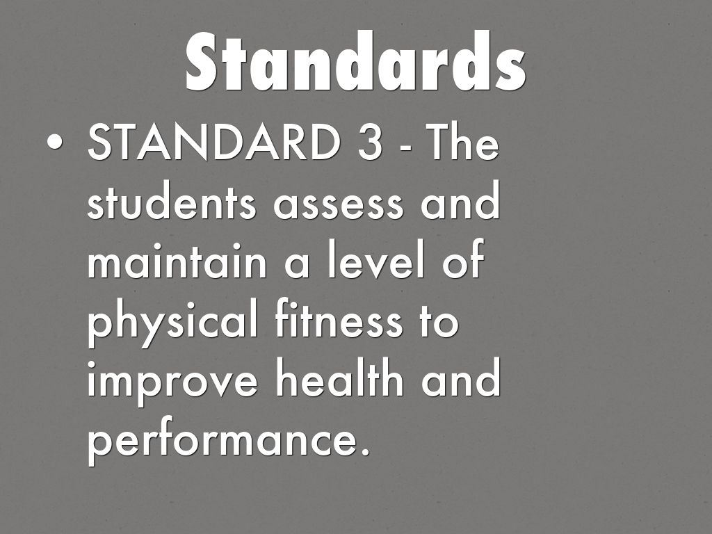 STANDARD 3 - The students assess and maintain a level of physical fitness to improve health and performance.